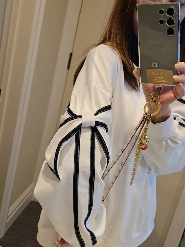 リボンスリーブがお洒落なトレーナー ホワイトね