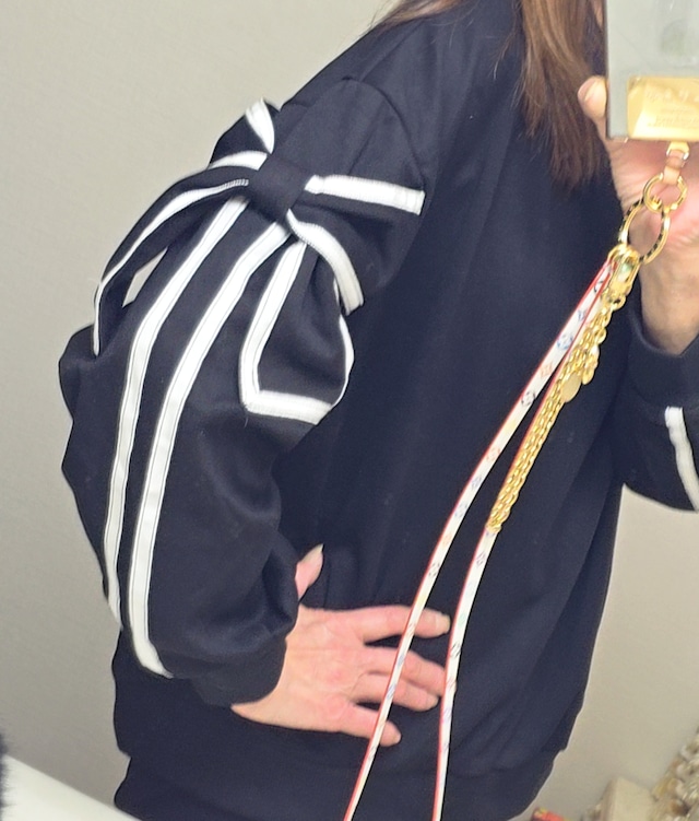 昨年ご紹介する予定がサロンの生徒さん達に人気で。。やっと、入荷してきてご紹介出来るようになりました。 シンプルだけど目を惹く、リボンスリーブがお洒落なトレーナーが登場です! どんなスタイルにも合わせやすく、デイリーコーデにぴったり。リボンのディテールがさりげなく女性らしさを演出し、着るだけで気分もアップ! おリボンは袖に縫い付けられているので邪魔にならないの。 肌触りの良い素材を使用しているので、着心地も抜群! お出かけや、リラックスタイムにも大活躍。ルームウェアとしてもご利用いただけます。 カジュアルなのに、どこか特別感のあるトレーナーは、一枚持っておくと重宝すること間違いなしです! このリボンスリーブトレーナーで、いつもとは違ったスタイルを楽しんでみてくださいね! おうち洗いの場合は初回だけ別洗いしてくださいね!